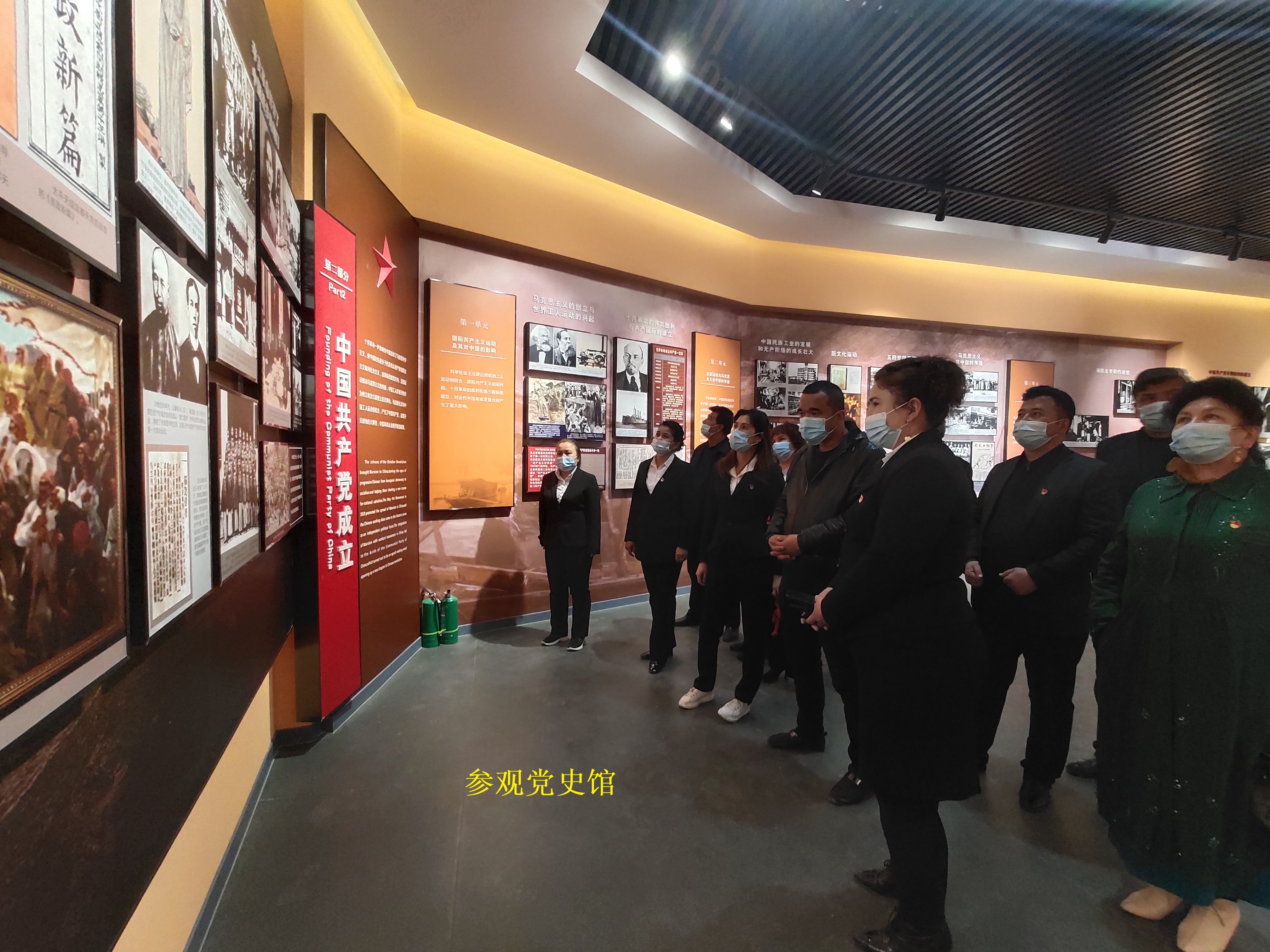 活动第二站,全体人员紧接着跟随讲解员参观了党史馆,重温革命历史,加强党性教育,筑牢爱党之魂。讲解员首先讲述了一大到十九大,党的发展历程;一段段详实的历史记录,让大家重温了新中国在中国共产党的领导下,夺取革命胜利所经历的不平凡的历程。党员们认真学习,接受革命传统和党的历史教育,从党的发展历史中汲取养分,凝聚力量,增加正能量,进一步牢固树立宗旨意识和群众观念。通大家仔细看、认真听,回望红色历史,进一步了解了革命先烈们的先进事迹,寻找红色故事,传红色基因。进一步了解了老一辈无产阶级革命家为了新中国的成立、祖国的发展建设,所体现的团结精神、奉献精神、艰苦奋斗精神,让党员、干部从灵魂深处接受了一次深刻的洗礼,让大家可以更深刻地了解革命精神,珍惜现在的美好生活,更加深刻体会着一名共产党员的光荣与责任。