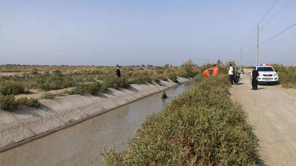 清风网讯(通讯员:窦明媛、王军涛)9月28日13时许,沙雅县盖孜库木派出所接群众报警称:一只马鹿掉入结然巴西村一条防渗渠内,民警立即联系护林站工作人员一起前往开展救助。由于防渗渠壁面光滑,下游水位较深,且马鹿具有一定攻击性。民警和护林员便从下游用绳索拦截马鹿,用绳子将其套住后拉上岸。救助花费二十余分钟,经观察马鹿未受伤便就地放归大自然。