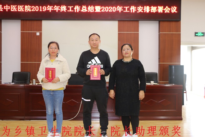 第二项议程宣读通过执业医师考试名单和表彰文件,为优秀科室、优秀乡镇卫生院长、院长助理、优秀员工颁奖。
