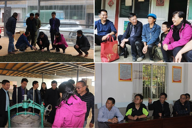 在云南大学援建的河边茶厂,张力率队进车间、看仓库,询问设备性能,详细了解河边茶厂生产经营、出口销售等方面情况,对河边茶厂的建设发展提出了“有资源、有产品、有特色、有销路、有收入”的建议与要求,同时,张力告诉随行调研人员,一定要继续发挥好云南大学的自身优势,把产业帮扶工作抓实抓好,在巩固好河边村脱贫成效的同时,为河边村乡村振兴持续注入发展动力。随后,张力率队到挂钩贫困户家中走访,详细了解了挂钩户近日来的生产生活情况,对他们生活中存在的问题与难题,为他们出主意、提建议、想办法,张力鼓励农户自强自立,早日实现脱贫致富奔小康,并向挂钩户送上了爱心物资。