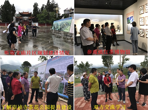 下午,考察组一行先后到文庙片区、书院片区、崇祯寺茶花公园、滇红公园考察参观。相关部门详细介绍了各个参观点的规划建设情况,考察组对我县围绕中心城区周围主要山体分布情况,提出的“十三山”概念性规划以及通过打造山水文化,重塑山水格局,提升城市发展品质的做法表示肯定和赞赏。在文庙片区,考察组参观了文庙、滇红茶博物馆,详细了解文庙历史、凤庆茶文化历史及滇红茶产业规划。