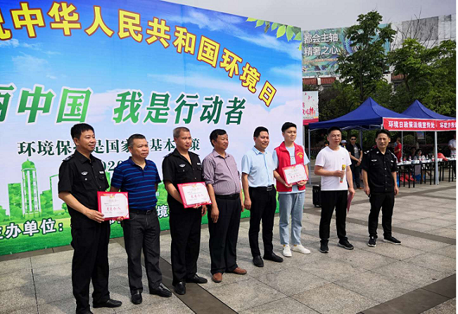图为环保、法院工作人员,党员、环保志愿者现场讲解宣传