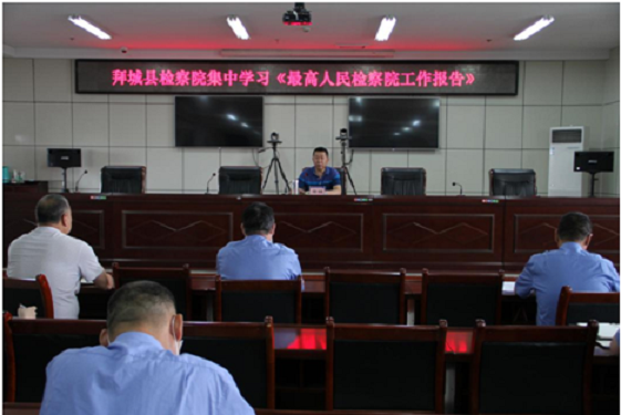 清风网讯(拜城县人民检察院;金悦)近日,拜城县人民检察院积极组织全体检察人员专题学习最高人民检察院检察长张军在第十三届全国人民代表大会第三次会议上作的《最高人民检察院工作报告》,院党组副书记、检察长开赛尔•热合曼主持会议。