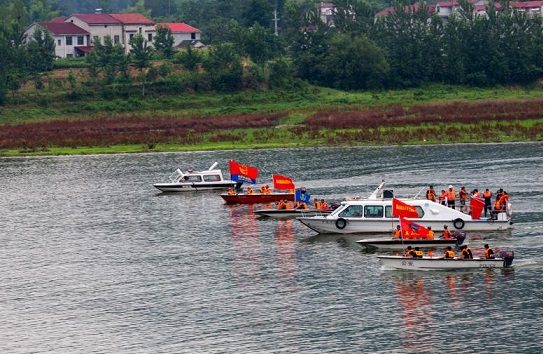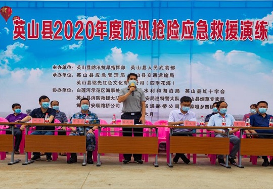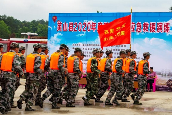 当前,英山县已进入主汛期,为了提高英山防汛抢险能力, 6月12日,英山县防汛抗旱指挥部在英山县方家嘴乡四颗枫村河河堤白莲河库尾水域上,举行大型军地防汛应急抢险暨水上救援实战演练,一场水上演练大点兵拉开序幕。