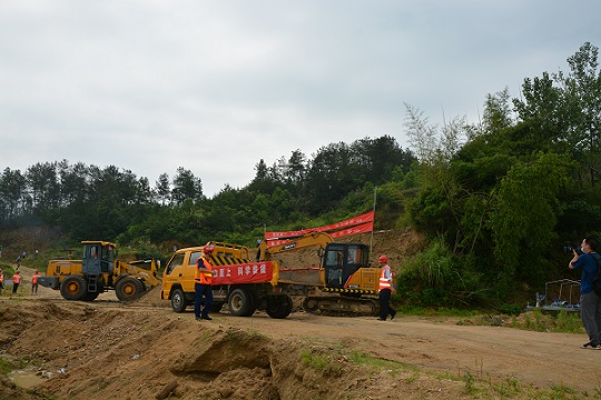 交运局道路抢修分队开动挖机、铲车等式大型装备,清除土方,修筑临时道路。