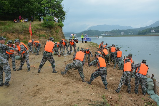县防汛办值班领导迅速向县防汛指挥部前线总指挥蔡文男报告后,蔡总指挥当即启动《英山县防汛抢险应急预案》,县人武部副部长万海峰、军事科长江汉东、温泉镇武装部长方海波通过微信、QQ、电话等方式,通知民兵应急分队人员集结。