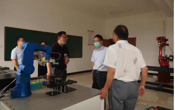 专家组一行查看了该校新增专业人才培养方案、课程体系建设、师资队伍建设等资料,参观了校园平面建设和实训基地,对工业机器人应用技术和美术绘画专业相关实训设施设备进行了重点考察,听取了副校长周立新关于新增专业情况的介绍,双方就专业建设问题进行了深入交流。