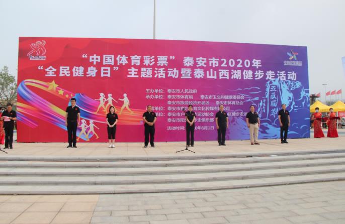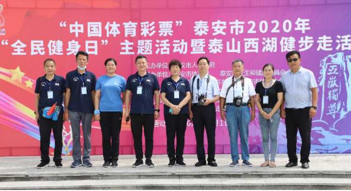 清风网山东泰安8月3日讯(韩庆全) 今年 8 月 8 日是全国第 12 个 " 全民健身日 ",8 月 1 日," 中国体育彩票 " 泰安市 2020 年全民健身日主题活动启动,25 支代表队共 800 余人徒步环行泰山西湖,以健步走方式倡导健康生活,强身健体抗疫情。