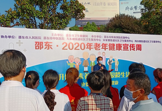 启动仪式上,邵东市卫健局党委书记、局长姜友君致词并讲话,他强调,邵东市60岁以上老人达16.75万人,占全市总人口的16.36%。健康问题是老年朋友最关心、最现实、最直接的切身利益问题。开展老年人健康教育和健康宣传,是应对全市老年朋友地方病、慢性病、常见病高发的最直接方式,也是践行“没有全民健康就没有全民小康”的有效工作举措。通过此次活动,提高全市老年朋友自我保健意识,学习自我监护知识,掌握自我管理技能,结合自身情况参加有益身心健康的体育健身和文化娱乐活动,养成科学文明健康的生活方式,提高新冠肺炎疫情防护能力,切实履行好自己健康第一责任人的责任,为推进全市“老有所养、老有所医、老有所为、老有所学、老有所乐”等系列老龄服务工作打好基础。