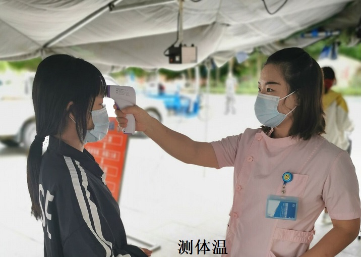 早晨9点开始,2018级的学生在职校西门分批错峰陆续返校,按照既定的安排,每位返校的学生都佩戴校牌、戴上口罩,持着健康码,接受值班老师的体温检测;党委委员、副校长柳兴湘也在校门口忙活着,给学生交代注意事项,提醒学生戴口罩、查看行程码......。