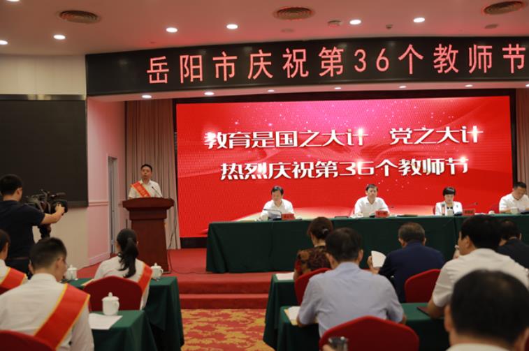 清风网讯(通讯员:宁平)9月10日,岳阳市举行庆祝第36个教师节大会,表彰一批优秀校长、优秀教师、优秀班主任、最美乡村教师。岳阳市春雷学校董事长周龙上榜并作为“岳阳市民办教育典型代表”发言。