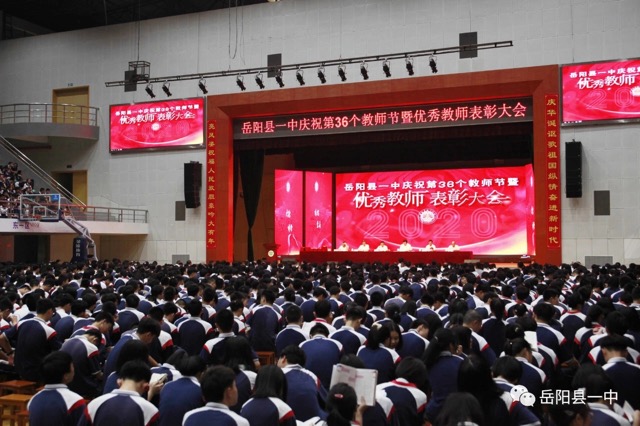 近日,岳阳县一中第36个教师节庆祝暨表彰大会在学校体育馆隆重举行,全校四千余名师生齐聚一堂,整个会场流光溢彩,气氛庄重而热烈。