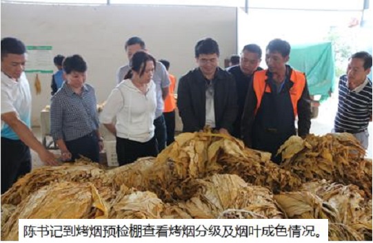 在紫微村观音山预检棚内,工作人员正忙碌着为农户交售来的烟叶进行分级打包。陈昌砚认真查看烟叶分级、烟叶成色,与分级师傅进行亲切交谈了解烟叶交售情况,听取了烟站负责人对今年烤烟收购工作情况汇报。指出,当前,烤烟工作要按照“三催三保”有序推进,农户催采、催烤、催交,收购保时、保质、保量。特别是乡党委政府要按照属地管理原则压实责任,按质按量完成今年烟叶收购任务,切实保障群众利益。