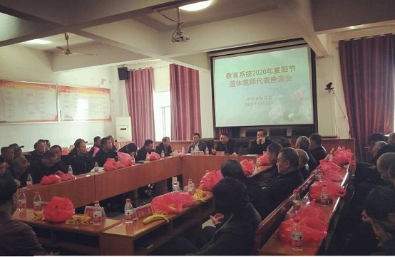 清风网讯(通讯员 ; 黄彬) 10月23日,新宁县教育系统离退休教师座谈会在县教育局会议室召开,来自全县16个乡镇的离退休教师代表70余人兴致勃勃地回到了“娘家”共度重阳佳节。久别重逢,一家人说知心话道离别情,整个会场欢声笑语,其乐融融。