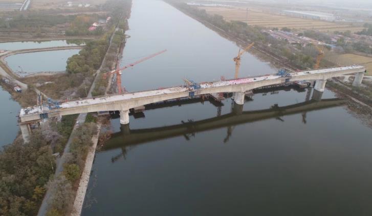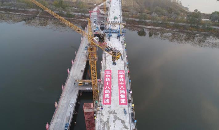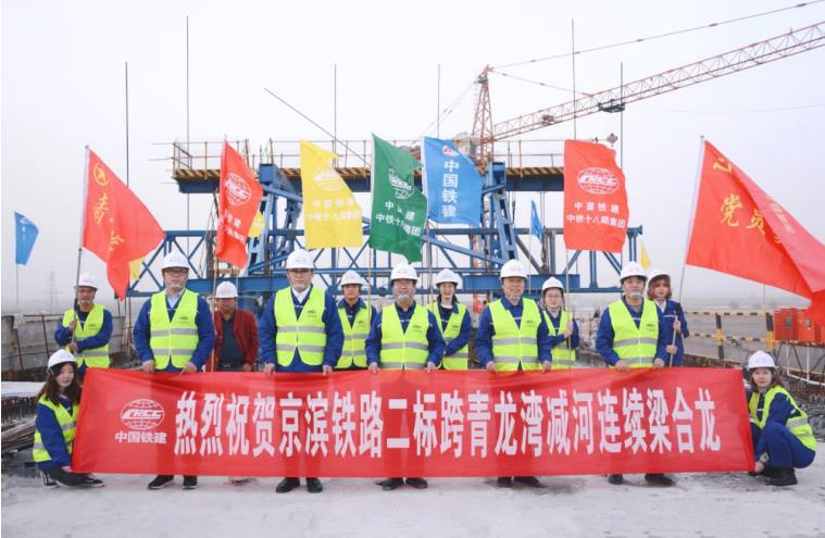 清风网天津11月1日电 (杨士超 伍振 报道) 10月31日,中铁十八局集团承建的京滨铁路全线最大跨度跨河连续梁——北辰特大桥跨青龙湾减河连续梁顺利合龙,助力打造“轨道上的京津冀”。