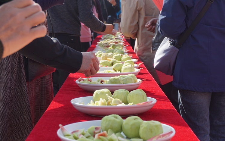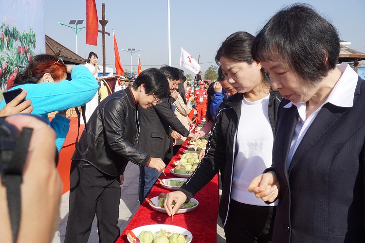 早上7点钟,该镇的志愿者便早早来到文化节会场,前来参加第二届冬桃文化节暨第三届冬桃品鉴会的桃农从自家桃园里精选的冬桃带着满满的自信报名参赛。冬桃品鉴大会共有22户桃农参加,当场由嘉宾评委品尝冬桃,选出“冬桃之王”。共品出一等奖1名,二等奖2名,三等奖3名,分别给予500、300、200元的奖励。