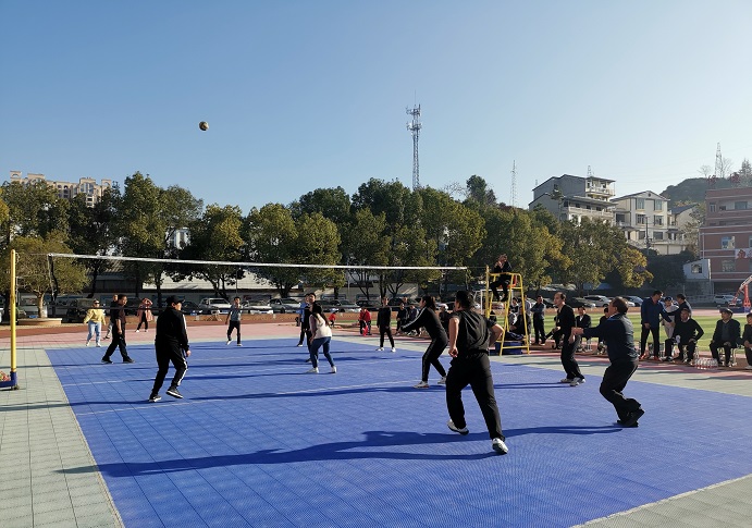 清风网讯 (通讯员:石小兵、肖本元)10月14日上午,长冲中学运动场上人声鼎沸,“2020年温泉镇教职工男女混合排球赛”正在火爆进行。排球场上,队员们奋力拼搏,高潮迭起,观众的喝彩声一浪高过一浪。