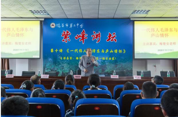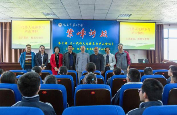 瑞昌市关工委副主任胡家连、柯愈谱,二中校长徐平及学校党政班子成员、高一全年级师生共240余人参加了听课。课后,瑞昌市委常委、瑞昌市委统战部部长胡定文会见梅楚安,欢迎梅先生常来瑞昌传授红色文化。