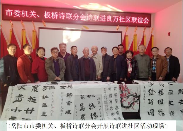 清风网讯(特约记者/:宁平)11月13日,岳阳市市委机关诗联分会和板桥诗联分会开展诗联进社区活动,弘扬优秀传统文化,营造浓厚的文化氛围,为社区精神文明建设添色加彩。