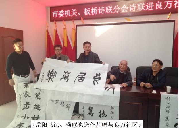 市委机关诗联分会会长李伟华小结本次活动说:“市委机关诗联分会和板桥诗联分会集中了全市许多对传统文化有热情的老干部,通过开展送诗联进社区活动,不仅涵养居民文明,同时让我们的爱好更有意义了。”