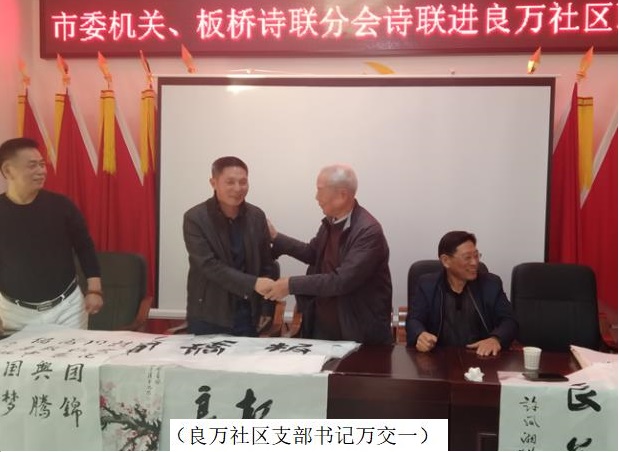 据悉,良万社区十分重视精神文明建设工作,专门设立文化室,丰富居民文化生活。社区支部书记万交一表示,希望两家诗联分会和社会各界多到社区传经送宝,提高居民文化素质,促进社区精神文明建设迈上新台阶。