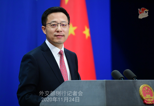 人民网北京11月24日电 据外交部网站消息,外交部发言人赵立坚主持今日例行记者会。