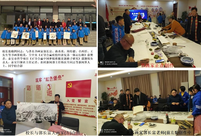 清风网山东泰安12月1O日讯(韩庆全、姚曙光、唐永祥,通讯员 宋燕)12月7日,泰山脚下山东省泰安市江山实验学校与一批书法家、画家互动,超前的办学理念与目标,科学的运营体制机制体系模式,现代化的教学、学生食宿设施环境服务,优异的教学成绩,令大家心悦诚服,惊叹不已:“想不到泰安有这么好的学校,震撼,震撼!”书法进校园,平添了学校艺术颜值,圆梦今朝,霸屏神洲,泰安头条、泰安周刊、美篇等予以报道,点击率直线攀升,效应几何倍增。