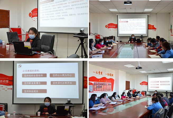 萨尔娜老师从“‘十三五’收官之年的突出成就充分彰显了党的坚强领导,制度优势和人民力量;规划《建议》的核心要义:‘三个新’;2035年远景目标、‘十四五’时期经济社会发展指导方针和主要目标;全面贯彻新发展理念、推动高质量发展;加强党的全面领导,动员各方面力量,为实现十四五规划和2035年远景目标尔团结奋斗”5个方面,对党的十九届五中全会精神进行了详细解读和深刻阐述。
