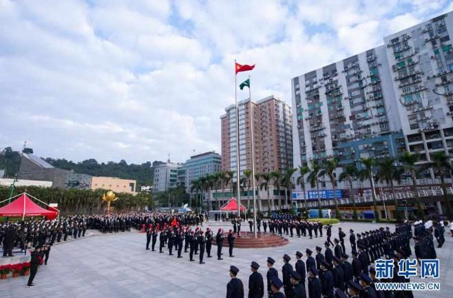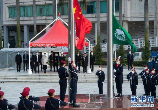 新华社澳门12月20日电(记者郭鑫)澳门特别行政区政府20日早晨在金莲花广场举行隆重的升旗仪式,庆祝澳门回归祖国21周年。