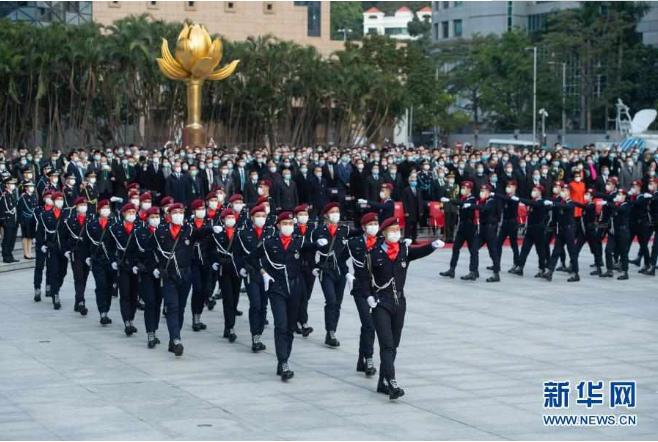 12月20日,澳门特别行政区政府在澳门金莲花广场举行升旗仪式,庆祝澳门回归祖国21周年。新华社记者 张金加 摄