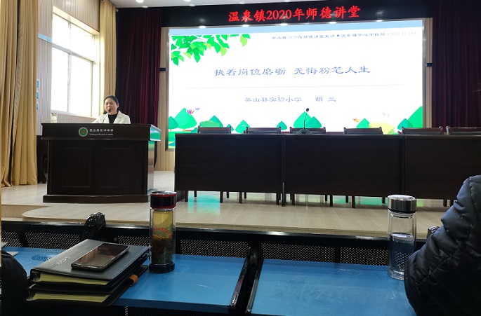 清风网讯 (通讯员:石小兵)12月19日上午10:00,温泉中小学300余名教师汇聚在长冲中学报告厅,参加教育总支组织的以“铸师魂,立师德,做人民满意的教师”为主题的师德讲堂活动。此次活动由总支书记詹宇意主持,特聘请县一中安钢和县实验小学胡兰两位老师来现场作师德事迹专题报告。