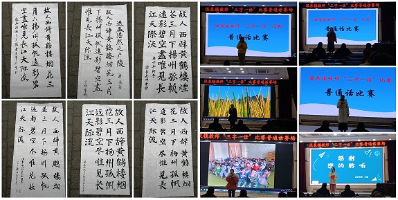 赛中,教师们或提按顿挫,或声情并茂,其中,粉笔字工整清秀,硬笔字苍劲隽美,毛笔字遒劲流畅,一幅幅作品跃然纸上,让人赏心悦目;普通话比赛现场,教师们依据内容的不同,有的慷慨激昂、热情四溢;有的深情款款,娓娓动听;有的抑扬顿挫、婉转悦耳,各位教师发自肺腑的朗读(或演讲)和慷慨激昂的情感流露博得了大家阵阵掌声。通过四个小时的激烈角逐,经评委认真评判,四个竞赛项目按成绩评选出了一、二、三等奖。