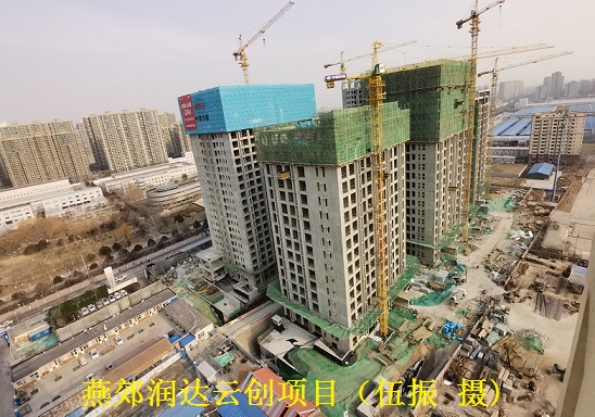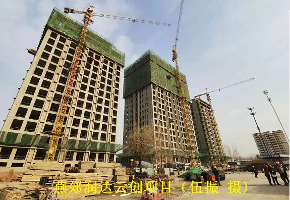 燕郊润达云创项目总建筑面积约13.6万平方米,最高层高高达3.9米,包含5栋高层公寓楼及地下车库和配套商业。该项目施工场地狭窄、距离居民区仅一墙之隔,夜间不能施工,施工环境复杂、环保要求高。