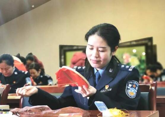 在现场绣工的精心指导下,大家迫不及待地打开工具盒,俯首绣绷、针线迂回,在鲜艳的旗帜上绣着盾牌、松枝等图案,将对党的忠诚和对人民公安事业的无限热爱一针一线地绣进红蓝相间的警旗中。通过近一个小时的专注刺绣,女警代表们都拿到了自己亲手刺绣的警旗摆台。大家纷纷表示,将铭记习近平总书记训词精神,牢记十六字方针,永远做党和人民的忠诚卫士,为建设更高水平的平安湘潭助力添彩。(通讯员:龚慧)