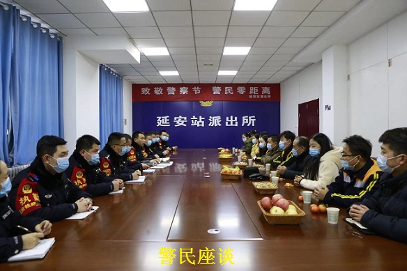 警营开放,走进群众。1月10日,延安站派出所开展了以“致敬警察节,警民零距离”为主题的座谈会,邀请了退休民警、民警家属、站段职工等人员参加。所长杨杰就2020年公安工作情况进行介绍,并对家属们一直以来的支持表示诚挚的感谢。会后,民警们来到站区,通过发放宣传资料、现场答疑、口头讲解等向旅客群众进行安全宣传,拉近警民距离,提升群众安全防范意识。