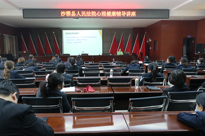清风网讯(沙雅县人民法院:周瑞红)为进一步加大关心关爱干警力度,保证干警身心健康,缓解干警心理压力,落实各项从优待警措施,引导干警以充沛的精力、平和的心态,全身心投入到法院各项工作中来。12月26日上午,沙雅县人民法院邀请县第一中学心理教师阿通古丽·麦提尼亚孜以“拥抱美好 完善自我”为主题,为全院干警上了一堂生动丰富的心理健康辅导课。