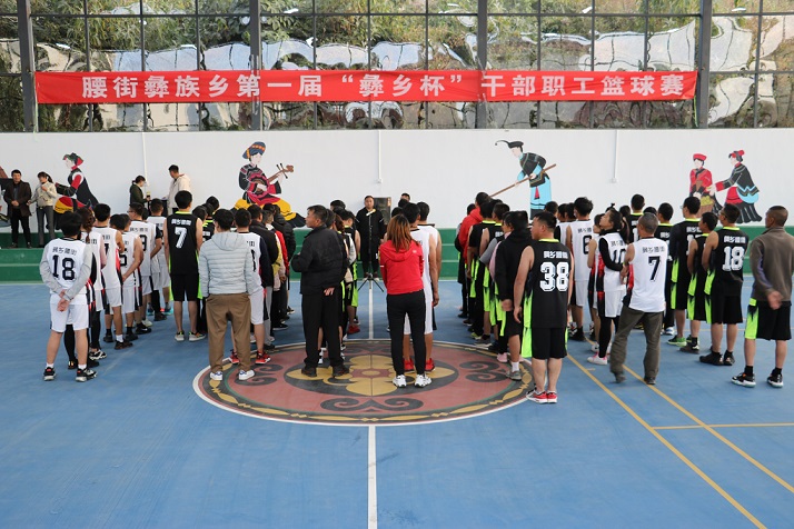 清风网讯(腰街乡: 曹娟 张正彪)为认真贯彻落实习近平新时代中国特色社会主义思想、统筹推进全乡各项事业蓬勃发展,构建健康、文明的职工文化氛围、丰富职工的业余生活,近日,腰街乡在彝乡体育馆举办第一届彝乡职工杯篮球赛。本次比赛共有参赛队伍8支,分别由腰街彝族乡人民政府队、腰街彝族乡支部商会队、开明村队、民安村队、腰街村队、函关村队、星源村队、复兴村队组成。秉承友谊第一、比赛第二、尊重裁判、尊重对手的比赛宗旨,实行分组循环赛制角逐出冠、亚、季军。本次比赛预计共进行10天,一天进行两场比赛,每天第一场比赛时间为晚上七点。本次篮球赛的顺利开幕,是我乡响应全民健身口号,锻炼身体、强健体魄的一项重要举措,是丰富干部职工文化娱乐生活、营造团结和谐的文化氛围的一次乐事、喜事,是加强干部职工之间联系交流,提高凝聚力、战斗力,展现良好精神风貌的一个大舞台。