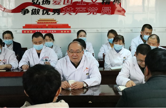 图一为2021年1月15日,拜城县人民医院院长张武军和新疆医科大学附属第一人民医院“访惠聚”巡回医疗队就基层医疗单位重点学科、人才队伍等建设情况进行座谈交流
