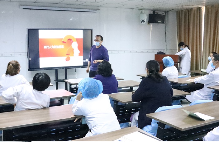 图二为2021年1月15日,新疆医科大学附属第一人民医院“访惠聚”巡回医疗队精神学科专家为医务人员进行学术指导