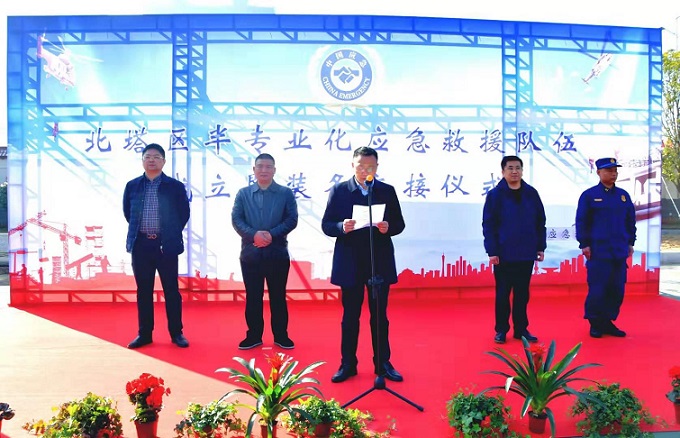 北塔区副区长朱祥国为新组建的半专业化应急救援队伍授牌,他指出,应急管理工作事关人民群众生命财产安全,是广大群众和社会各界关注的焦点,建立专业救援队伍,不仅是实现群众救援向专业化救援、科学救援转变的必然要求,也是提高救援效率、减少人员伤亡的现实需要。组建半专业化应急救援队伍和配备应急救援装备,对于提升我区应急救援能力,有效处置各类灾害事故,具有十分重要的意义。