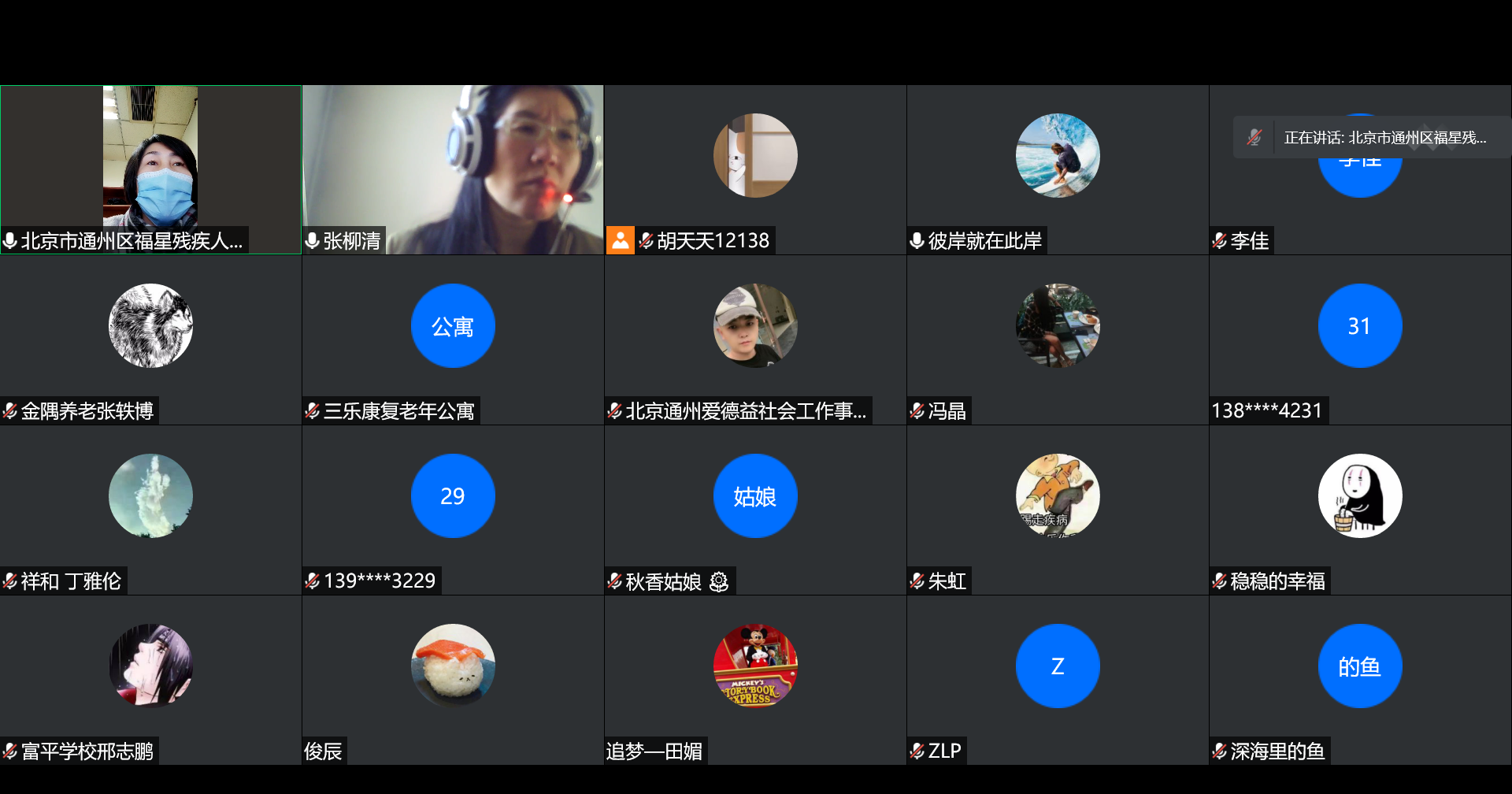本次线上评估会议主要面向通州区所有巡视探访单位,在评估工作总结的同时帮助各机构排忧解难,切实地帮助巡视探访机构解决现实问题。本次评估会议特邀在项目管理领域以及老年探访领域的3名专家作为评审队伍,针对各机构汇报以及资料手册中出现的问题进行积极探讨。会中,专家团队与各机构项目负责人深入探讨养老发展的创新模式、疫情防控新形势下的巡访工作细则等养老行业相关热门议题;专家们在同时在听取其他机构汇报的过程中各巡访之间也有良好的互动和充分借鉴学习不同管理体制下的“新优势”与“好经验”。