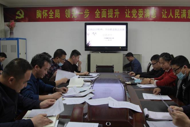 “唱歌曲”,用音乐净化心灵。通过聆听和学习《法治》,将全体干部带入“国有法、家有规”,法治社会,大同和谐的情境,渲染了庄严的“法治”道德讲堂氛围。