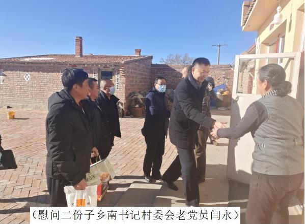 任瑞一行先后走访慰问了二份子乡南书记村委会老党员闫永、双玉城村委会老党员徐根年、大病困难职工张晓林,关切地询问他们的身体状况、家庭和生活情况,为他们送去慰问金和慰问品,并致以节日祝福。任瑞指出,基层老党员、老村长经验丰富为当地经济建设和发展做出了不少贡献,新当选的村委会干部要向老党员、老村长多学习、多请教,希望老党员保持乐观积极的心态,保重身体,继续在基层矛盾调解和新农村建设上当好“顾问”,起到模范带头作用,鼓励困难职工调整好心态、增强战胜病魔的勇气和信心,争取早日康复。