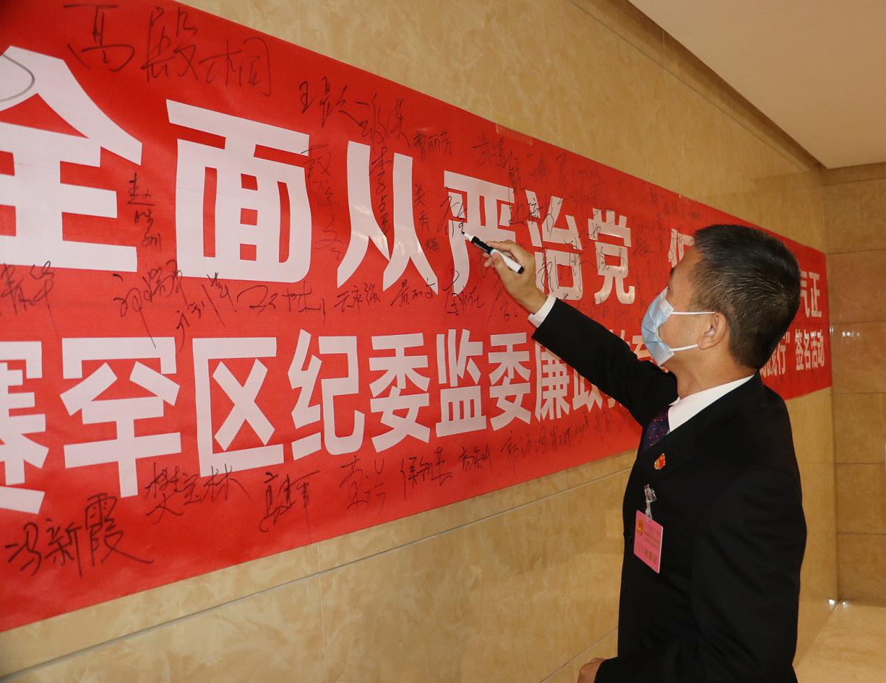 这是一次不同寻常的两会,无论人大代表,政协委员,还是工作人员等,无一倒外都佩戴了口罩,因为新冠疫情还没有彻底消失,稍有不慎就会卷土重来,戴口罩就是为了防患未然,最终战胜疫情。同样反腐败斗争虽然取得压倒性胜利,但流毒还没有彻底肃清,全面从严治党仍处在重大历史关头,严明政治纪律、政治规矩,构建“三不”机制,廉政宣传教育这堂课要始终想在先、走在先。