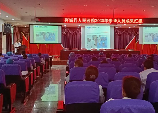2020年在援疆指挥部的大力支持下,拜城县人民医院选派呼吸内科、内分泌科、烧伤外科、乳甲外科、急诊科、五官科、麻醉科、病理科等9名专业技术骨干分赴温州市中心医院、温州医科大学第一附属医院、温州医科大学第二附属医院等三级甲等医院进修学习,会上,9名医护人员分别将自己在温州三甲医院进修所学的先进诊疗技术及规范的诊疗方案进行了分享汇报,并结合医院实际情况提出了下一步的工作思路及工作打算。