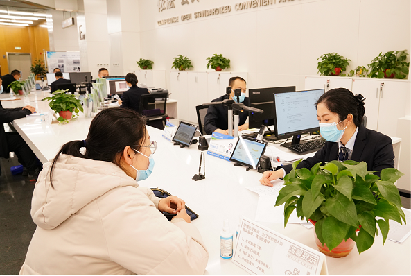 图二企业主正在行政审批和政务服务大厅办理执照业务