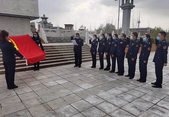 之后前往阿克苏市人民英雄纪念碑前,全体党员干部集体鞠躬默哀,并向革命先烈敬献鲜花及青松表达哀思。随后由副支队长王新胜同志领誓,大家面向党旗,举起右拳,一起重温了入党誓词。我们今天的生活,都是老一辈革命先烈用生命换来的,我们永远都不会忘记那段历史。英勇的烈士们虽然牺牲了,但是他们的名字成为了永恒,他们永远是中国人的骄傲,是我们的英雄,是我们后辈永远的学习的榜样。