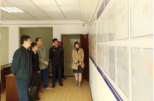 刘扬一行来到英山县社区矫正局,实地查看了社区矫正宣告训诫室、监控指挥中心、集中教育学习室、社区矫正检察室等工作场地,并认真了解了社区矫正手机定位监控平台、远程视频督查系统等设施的运行情况,向工作人员详细了解了平台显示异常人员的请销假情况。检查组查看了英山县社区矫正动态分级管理公示栏,对英山县司法局从严管理社区矫正对象,创新举措,落实分级管理制度等做法表示了充分肯定。