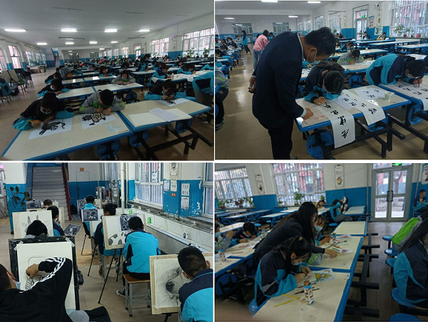 ——拜城县第一中学举行中华魂·民族复兴的旗帜“爱我中华”校园艺术节绘画书法比赛