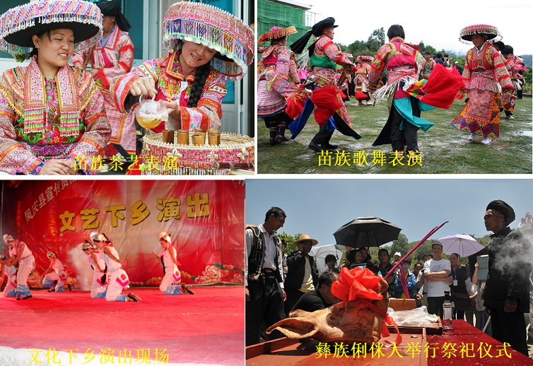 坚持把公共文化服务体系建设作为民族团结进步创建的基本内容,依托文化扶贫资金,先后完成了13个乡镇综合文化站定级达标,建成全县187个村(社区)综合性文化服务中心,实施了乡村旅游示范村等建设工程。县文化馆、图书馆、博物馆、文化站基础设施与功能得到了明显改善,实现对各民族免费开放。建成村使馆187个,注册成立文化旅游社团10家。无论汉族村组还是少数民族村组,都实现了文化广场、村文化室、农家书屋、应急广播全覆盖,构建了县、乡、村三级公共文化旅游服务网络。通过不断改善公共文化旅游基础设施条件,保障了各族人民群众基本文化旅游权益。